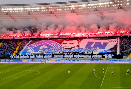 Kibice Niebieskich odpalili z rac krzyż dla śp. Hermana.